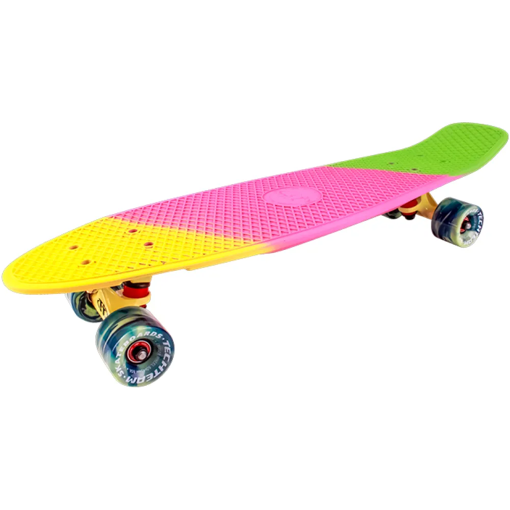 Пенниборд Tech Team TRICOLOR 27" желто-зеленого цвета понравился пользователям компактными характеристиками и небольшим весом. Модель выглядит эстетически привлекательно, современно. Купить круизер по цене производителя, воспользоваться приятными бонусами предлагает наш интернет-магазин.