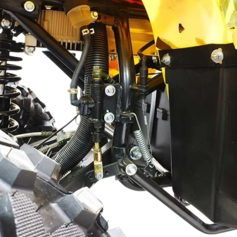 У GreenCamel Sahara A3400 имеется два багажных отделения (спереди и сзади) – он способен выдерживать нагрузку в двести килограмм. Имеется сигнализация и спидометр с LED-подсветкой.  Для комфортных поездок присутствуют пружинные амортизаторы, а для безопасности отличные гидравлические дисковые тормоза, установленные на все четыре колеса.
