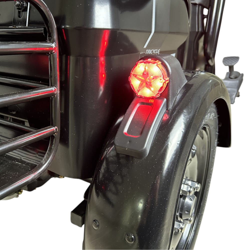 Yasmand R12 — трёхколёсный электротрицикл с задним приводом и мотором 1200 Вт. Он развивает скорость до 50 км/ч и обеспечивает комфортное передвижение по городу и на ровных загородных дорогах.