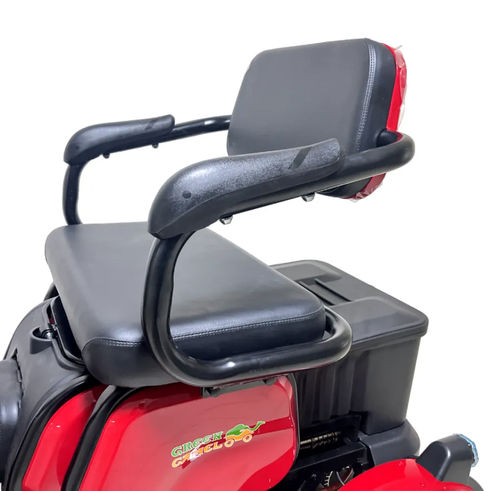 Широкое пассажирское сидение оснащено прочной спинкой и удобными подлокотниками для фиксации райдера при езде. Зеркала заднего вида открывают хороший панорамный обзор на проезжую часть, обеспечивая безопасность пользователя. Оригинальная тормозная система работает безукоризненно – девайс останавливается быстро в любой ситуации.