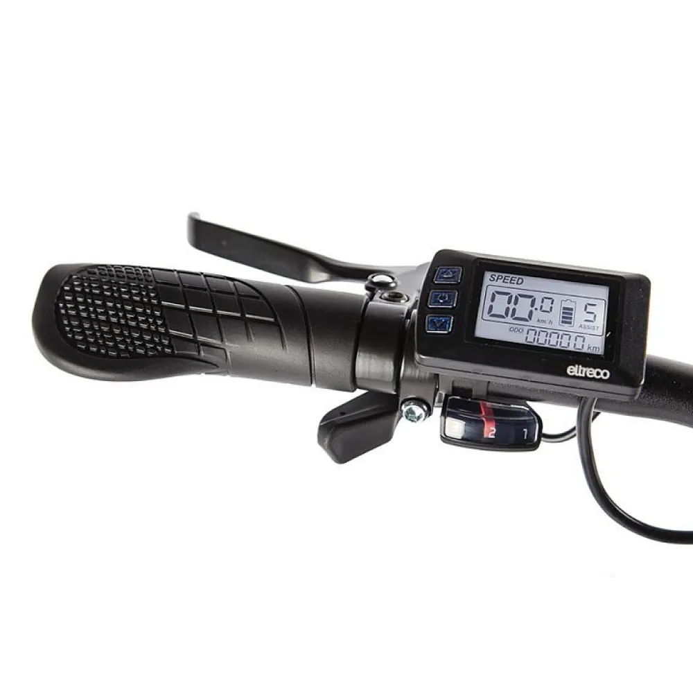 • дисплей – жидкокристаллический с подсветкой, позволяет ознакамливаться с технической информацией и скоростью велогибрида в разное время суток;