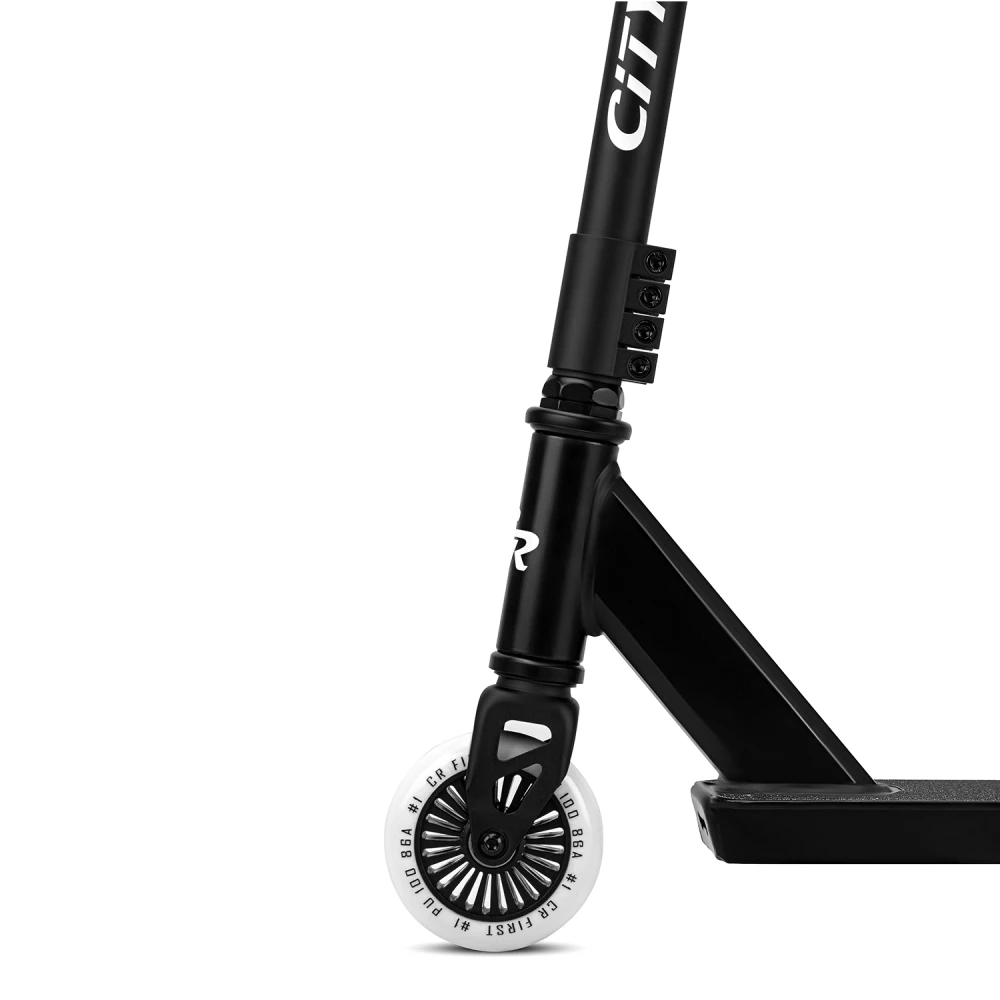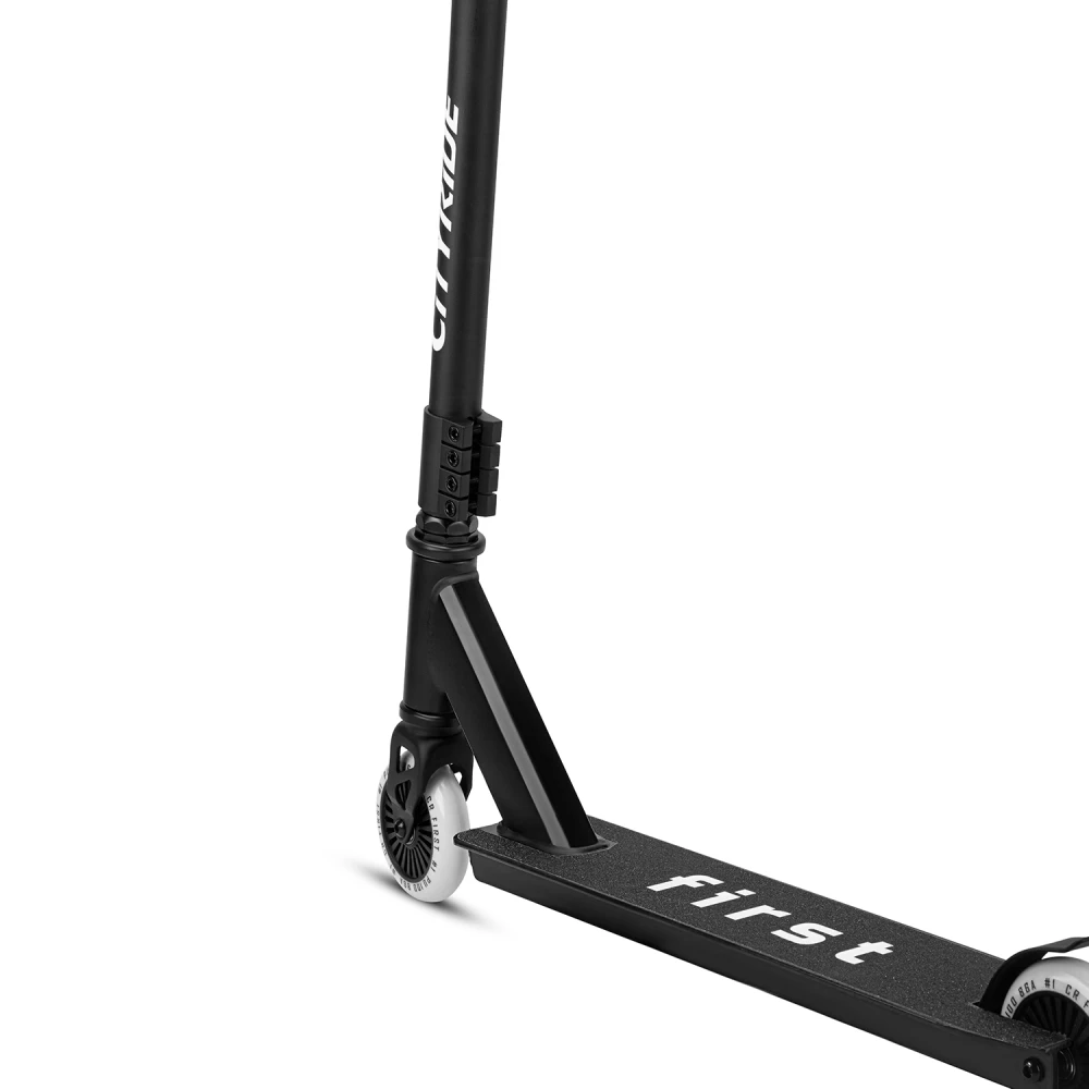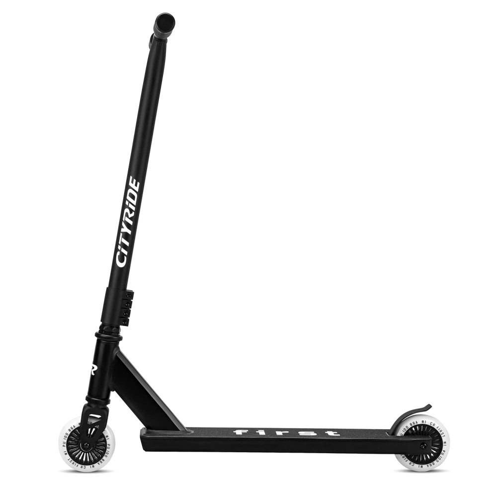 Трюковой самокат CITYRIDE FIRST черный – привлекательный и заметный на фоне аналогичной техники. Дизайн – классический, но заметный благодаря брендовой надписи.
