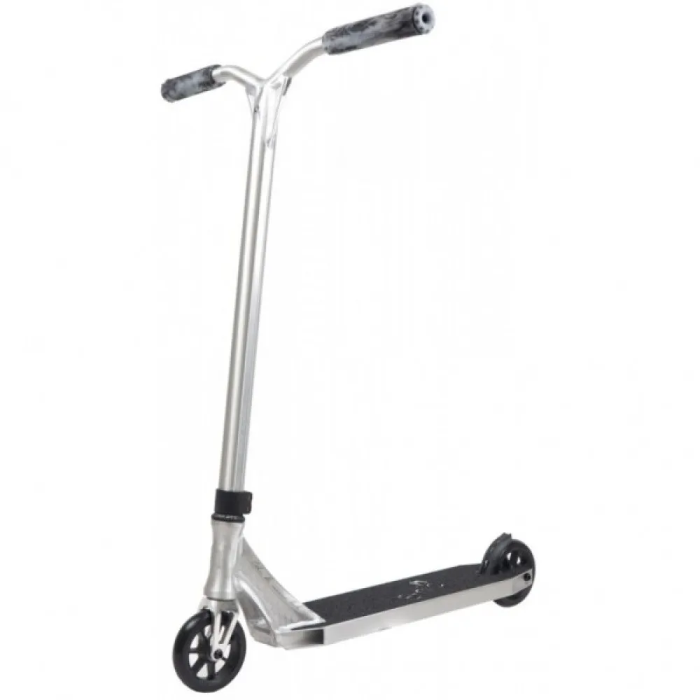 Трюковой самокат Ethic Erawan Chrome, цвета хром - трюковая модель понравилась райдерам высокими техническими возможностями.  Комплит подойдет райдерам ростом до 165 см. Комплектация и универсальность модели подразумевает использование и профессиональными пользователя, и новичками.