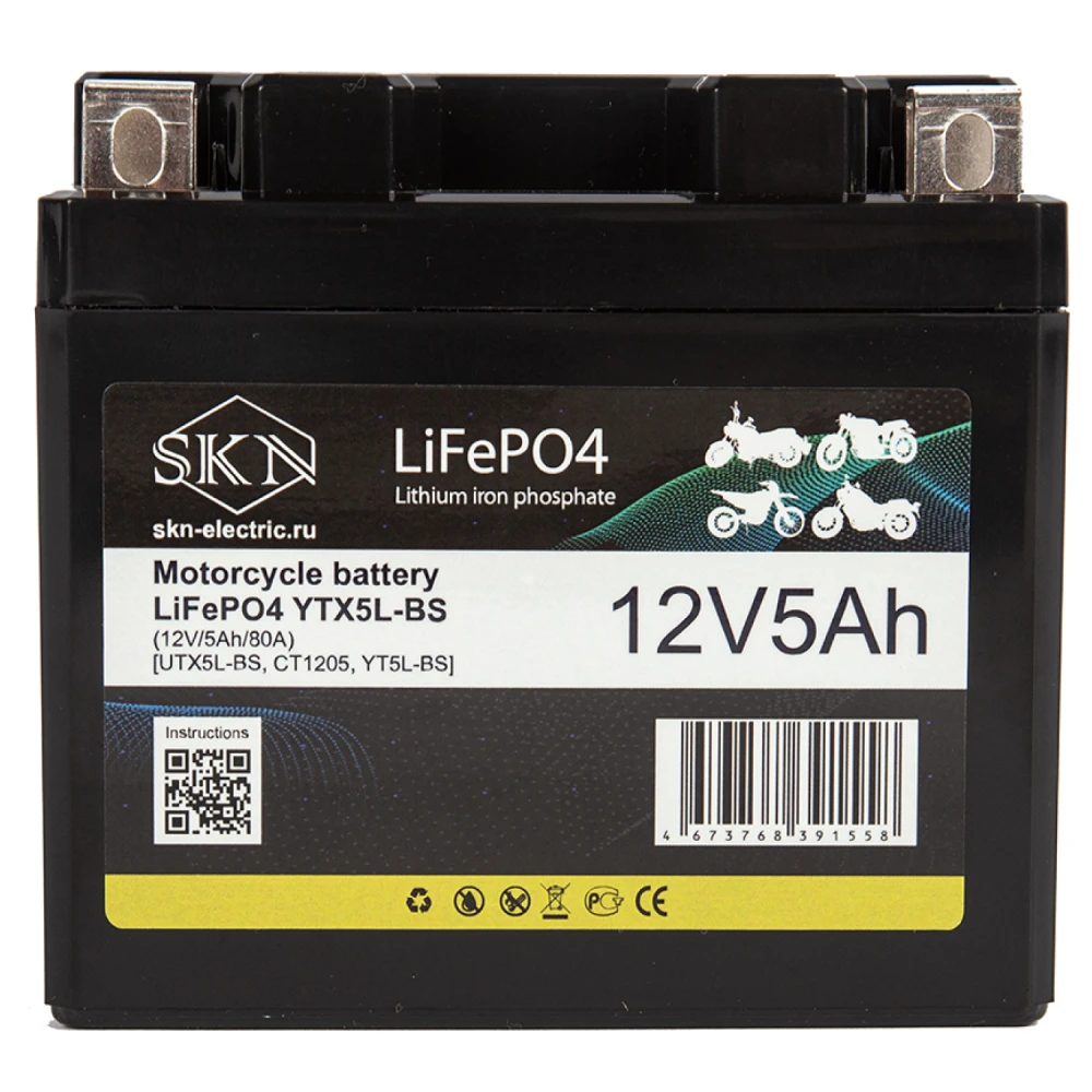 Аккумулятор для мототехники SKN LiFePO4 YTX5L-BS (12V/5Ah/80A) [UTX5L-BS, CT1205, YT5L-BS]